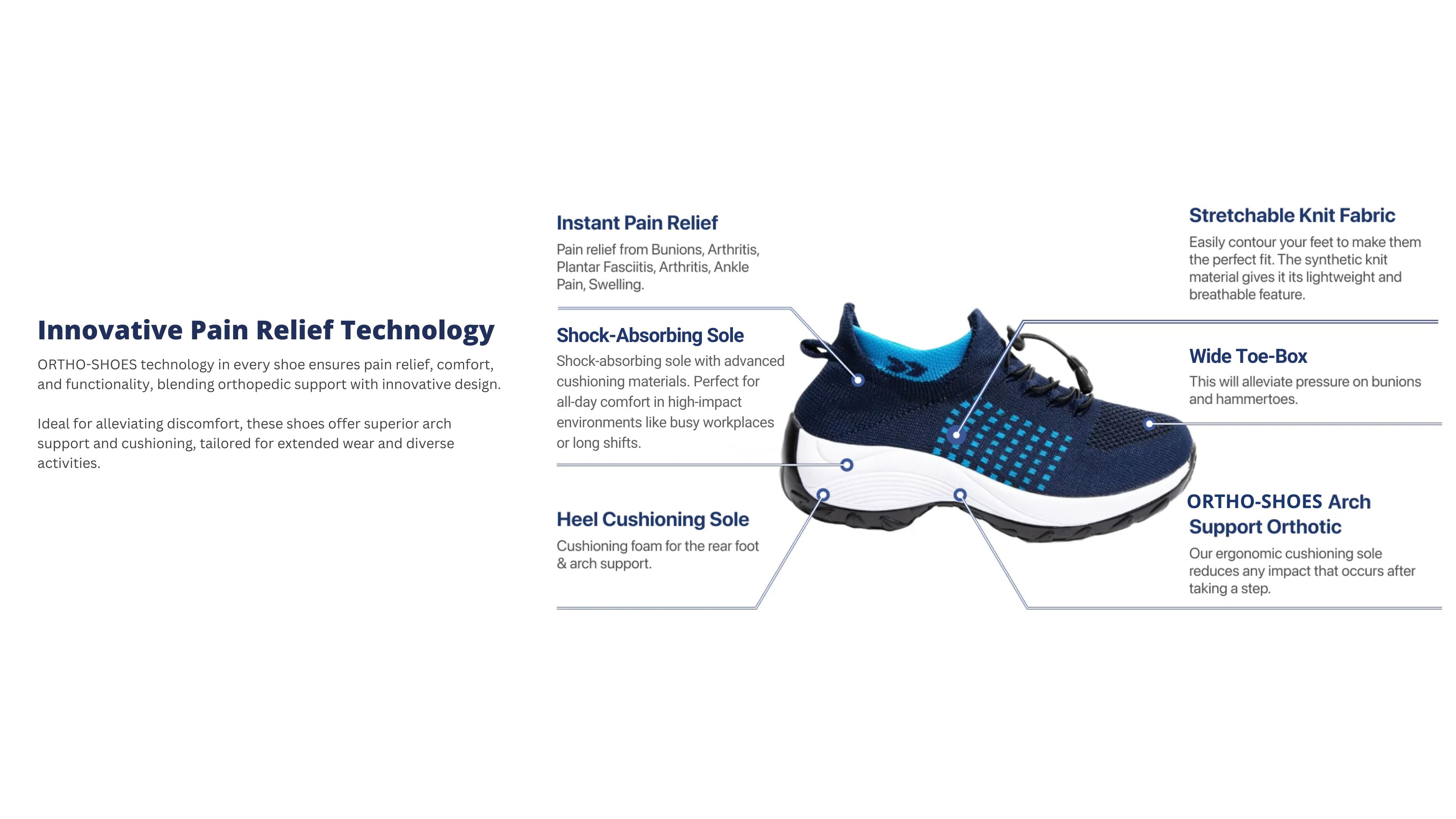 Ortho-Shoes Premium Tech System: Our ergonomic cushioning sole reduces any impact that occurs after taking a step.